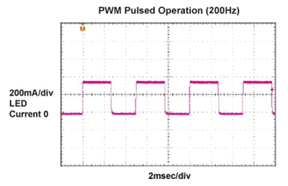 控制LED燈源亮度的最好辦法是通過一個低頻PWM脈沖調(diào)制LED電流。使用這種方法,LED電流根據(jù)占空比的變化觸發(fā)脈沖,同時保持電流幅度恒定。這樣,器件發(fā)出的光波波長在整個調(diào)節(jié)范圍內(nèi)保持不變。