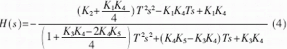 其中i=1,2,3,4,5。通過雙線性變換把式(3)轉(zhuǎn)化為連續(xù)時(shí)間傳遞函數(shù)模型: