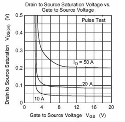 下圖是瑞薩2SK3418的Vgs電壓和Vds電壓的關(guān)系圖。可以看出小電流時,Vgs達到4V,DS間壓降已經(jīng)很小,可以認為導通。