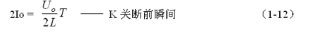 由圖1-4可以看出:當控制開關K的占空比D小于0.5時,流過濾波電感L的電流iL出現(xiàn)不連續(xù),輸出電流Io小于流過濾波電感L最大電流iLm的二分之一,濾波輸出電壓Uo的電壓紋波ΔUP-P將顯著增大。因此,串聯(lián)式開關電源最好不要工作于圖1-4的電流不連續(xù)狀態(tài),而最好工作于圖1-3和圖1-5表示的臨界連續(xù)電流和連續(xù)電流狀態(tài)。