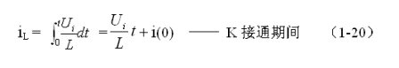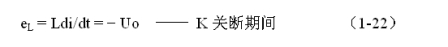式中–Uo前的負(fù)號,表示K關(guān)斷期間電感產(chǎn)生電動勢的方向與K接通期間電感產(chǎn)生電動勢的方向正好相反。對(1-22)式進(jìn)行積分得: