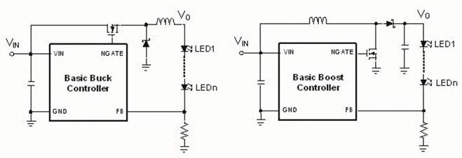 由于Boost和Buck-boost調(diào)節(jié)器的高度復(fù)雜性及其外圍電路、低效(特別是Buck-boost)和控制拓?fù)涞倪x擇不足,致使它們都不是轉(zhuǎn)換LED驅(qū)動(dòng)的首選。但是它們都是LED越來越多的照明應(yīng)用必不可少的。某些系統(tǒng)結(jié)構(gòu)可以用buck或者甚至是線性以調(diào)節(jié)器為基礎(chǔ)的LED驅(qū)動(dòng)來替代。比如類似于街燈的大型光源需要一百甚至更多的1W+LED。一般來說,針對通用照明的LED從低功耗走向高功耗,并且在其中間舞臺,比如汽車前燈和小型光部件,boost和buck-boost調(diào)節(jié)器代表了常電流驅(qū)動(dòng)的最佳選擇。