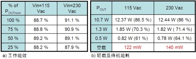 表2:NCP1379/80控制器提供高工作能效及低輕載和待機(jī)能耗。