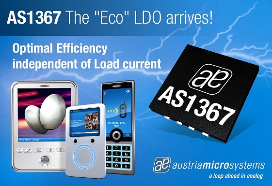 中國——全球領(lǐng)先的通信、工業(yè)、醫(yī)療和汽車領(lǐng)域模擬集成電路設(shè)計(jì)者及制造商奧地利微電子公司(SWX 股票代碼:AMS)擴(kuò)展旗下低壓差穩(wěn)壓器產(chǎn)品線,推出“Eco”LDO AS1367,在穩(wěn)壓輸出時(shí)可提供高達(dá)150mA的電流。