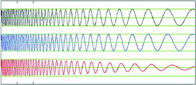 去掉隔直電容除了能夠消除爆破音,另一個好處是耳機(jī)低頻輸出也得到了很大的改善,圖5所示為一個掃頻信號經(jīng)過內(nèi)部產(chǎn)生負(fù)電源的耳機(jī)驅(qū)動器后的波形和經(jīng)過隔直電容后的波形對比。