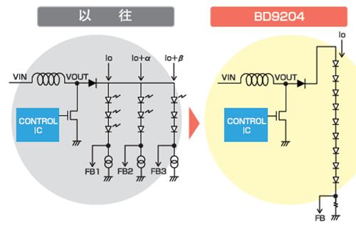 在液晶電視LED背光方面,Rohm新發(fā)布的BD9204F背光驅(qū)動(dòng)器能驅(qū)動(dòng)90×3列共270顆LED燈芯,從而非常適合LCD TV背光的應(yīng)用。福田明介紹,作為大型LCD背照光技術(shù),其關(guān)鍵點(diǎn)是列之間的亮度偏差以及一般由PWM進(jìn)行調(diào)光。在大型LCD上適用LED背照光的情況下,各LED列的LED電流偏差會(huì)使LCD板面所產(chǎn)生的亮度不均勻。對于這個(gè)問題,Rohm公司通過導(dǎo)入獨(dú)有的電路技術(shù),將各LED列的電流匹配偏差控制在±1.5%以內(nèi),即使是大型LCD適用了LED背照光的情況下,也不會(huì)發(fā)生LCD板面亮度不均勻的現(xiàn)象。