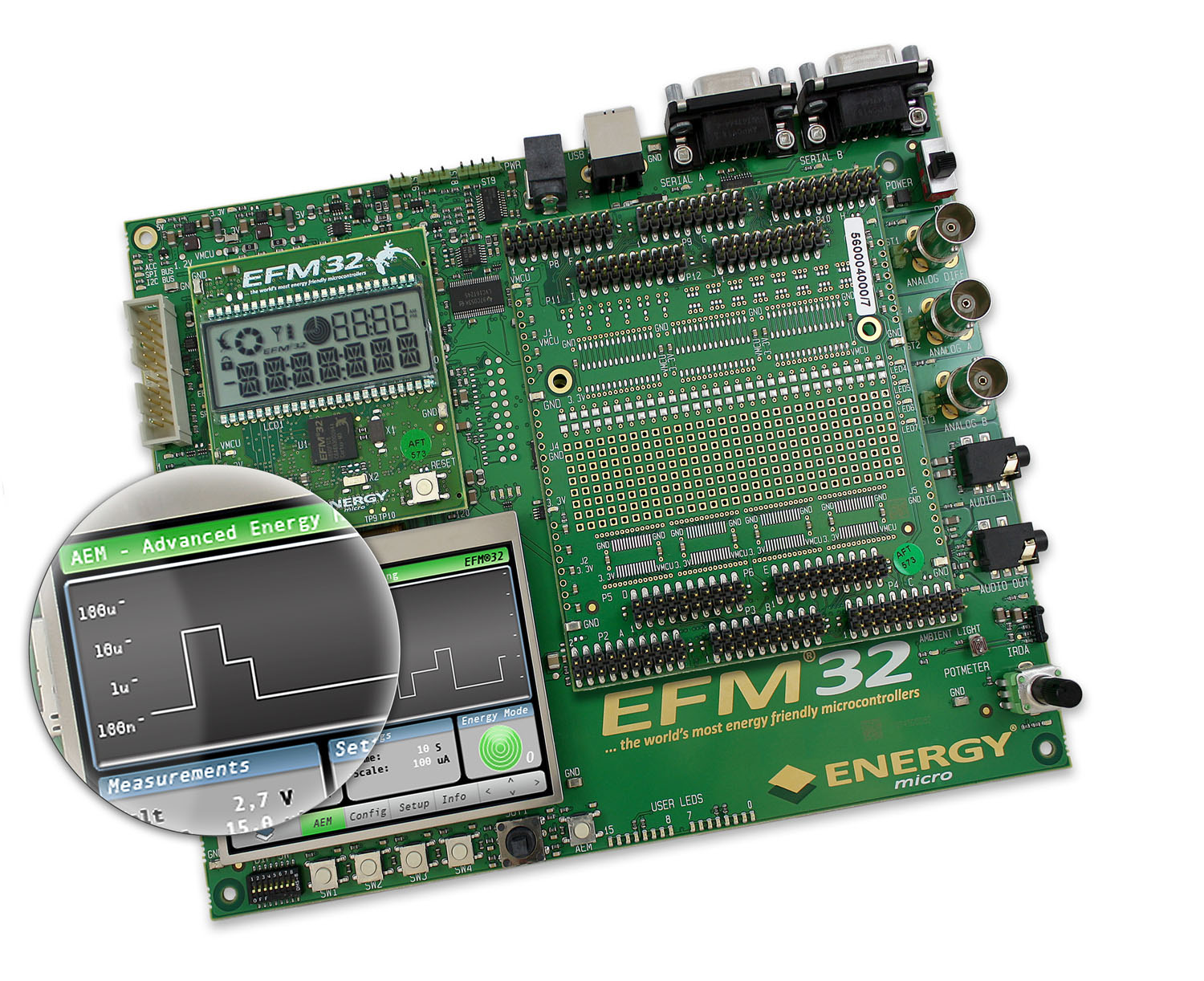 圖1:節(jié)能EFM32 Gecko微控制器的開(kāi)發(fā)工具包有先進(jìn)的能源監(jiān)控系統(tǒng)。