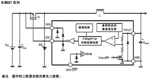 S-8520/8521系列產(chǎn)品在L值逐漸變大的過程中,因輸入電壓、輸出電壓以及負(fù)載電流的條件的不同,輸出電壓有可能變得不穩(wěn)定。實(shí)際調(diào)試電路時(shí),需要進(jìn)行充分的試驗(yàn)之后,再決定所選用的L值。二極管需要使用快恢復(fù)或者肖特基二極管。為保證電路的穩(wěn)定,S-8251芯片對輸出電容有著很高的要求,最重要的一點(diǎn)就是它的等效串聯(lián)電阻ESR必須足夠小,同時(shí)要有足夠的容量。電路設(shè)計(jì)采用了性能優(yōu)良的10μF鉭電解電容器,能夠保證穩(wěn)定的輸出。S-8251芯片是該電路的核心,實(shí)際電路線路布局對電路的性能影響非常大,尤其對輸出的紋波有直接影響,不合理的電路板布局設(shè)計(jì)會使輸出帶來額外的寄生振蕩,設(shè)計(jì)時(shí)必須注意。