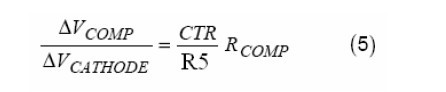 VCATHODE是AS431的陰極電壓,也就是誤差補償放大器的輸出電壓。CTR是光耦的電流傳輸比。R5(原文為R6,譯注)是與光耦的二極管串聯(lián)的限流電阻。RCOMP是AS3842的COMP腳當其試圖拉電流超過它的最大輸出電流時的輸出阻抗。