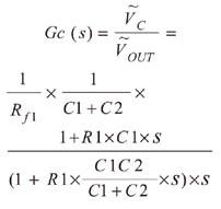 為了實(shí)現(xiàn)系統(tǒng)的抗干擾能力,Buck變換器除了主功率部分以外,還會有相應(yīng)的負(fù)反饋控制電路,補(bǔ)償網(wǎng)絡(luò)是反饋控制電路的一部分。補(bǔ)償網(wǎng)絡(luò)的加入可以提高環(huán)路的低頻增益,從而提高抗干擾能力;同時補(bǔ)償網(wǎng)路使系統(tǒng)擁有足夠的相位裕度,從而保證系統(tǒng)處于穩(wěn)定的工作狀態(tài),不會振蕩。圖2中黃色框內(nèi)的部分就是補(bǔ)償網(wǎng)絡(luò)部分,補(bǔ)償網(wǎng)絡(luò)中包括 R1,C1,C2和Rf1(注:Rf2在環(huán)路分析中不起作用),補(bǔ)償網(wǎng)絡(luò)的傳遞函數(shù)可以表示為:
