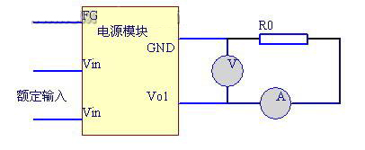 確定了額定負(fù)載以后,將開關(guān)電源額定輸入電壓接上,接通開關(guān)電源的負(fù)載回路,在負(fù)載回路中串一電流表(為安全計,推薦采用串入精密分流電阻器測其壓降,換算為電流值),測試回路中的電流,用萬用表電壓檔測試開關(guān)電源輸出電壓。并記錄電壓電流值。接線圖如2 所示,圖中R0 為額定負(fù)載。