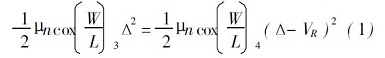 設(shè)電阻上的壓降為VR, M3 管的過驅(qū)動電壓為△, 由M3、M4 電流相等的條件, 得到: