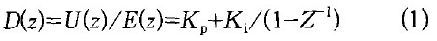 式中:Ki -- 積分系數(shù),Ki= KoT/Ti;T--采樣周期; Ti-- 積分時(shí)間常數(shù);Kp-- 比例因子;U(Z)--控制量輸出的z傳遞函數(shù);E(z)- -偏差量的z傳遞函數(shù)。