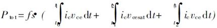 在晶體管導(dǎo)通后, 集電極電流從0逐漸變大, 而Vcesat不為0, 因此產(chǎn)生通態(tài)損耗。通態(tài)損耗可以表示為: