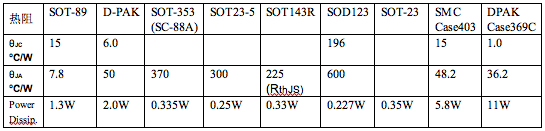由表中可見,On-semi公司的NSI50350ADT4G所采用的D-PAK具有最小的熱阻,其耗散功率高達(dá)11W。不過如果整個系統(tǒng)設(shè)計于這樣高的耗散功率也說明其效率不高,是需要避免的。