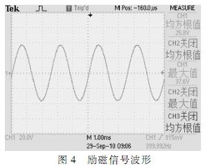 通過數(shù)字示波器觀察電路勵磁信號,自整角機(jī)輸出信號及接口電路變換輸出信號,結(jié)果波形如圖4~圖8所示。