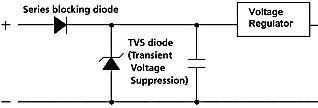 為了保護(hù)電子模塊不因蓄電池極性接反而損壞,常用的解決方案是使用一個(gè)正向?qū)ǎㄕ鳎┒O管來(lái)防止電流反向流動(dòng)(見(jiàn)圖1)。