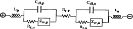 圖2-2中Lp、Ln為正負(fù)極電感;Rt.p和Rt.n 是電極離子遷移電阻;Cdl.p、Cdl.n是極板雙電層電容;Zw.p、Zw.n為Warburg阻抗,是由離子在電解液和多孔電極中擴(kuò)散速度決定的;RHF是前面提到的歐姆電阻。