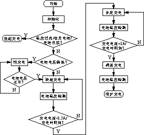 涓流充電階段:在補(bǔ)足充電階段后期,當(dāng)檢測(cè)到溫度上升超過極限值或充電電流減小到一定值之后,開始用更小的電流進(jìn)行充電直至滿足一定的條件后結(jié)束充電。