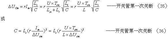的值可根據(jù)(41)式求得。在使用(48)和(49)式之前,還需要先利用(33)和(34)式或(35)和(36)式計(jì)算出電容器C的容量,以及根據(jù)開(kāi)關(guān)管的最大耐壓BVm定義好電容器C吸收尖峰脈沖電壓增量