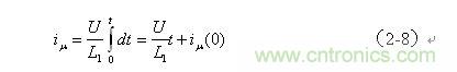 (2-8)式中, 為流過變壓器初級線圈的勵磁電流,U為加到變壓器初級線圈兩端的電壓,L1為變壓器初級線圈的電感量,t為時間, 為初始電流,即t = 0時刻流過變壓器初級線圈的勵磁電流。