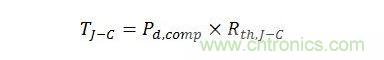元件結(jié)點(diǎn)(或內(nèi)核)和外殼之間的溫差可以用下面這個(gè)公式計(jì)算: