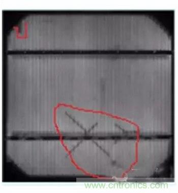 不同的隱裂,對(duì)電池片功能造成的影響是不一樣的。先來看一張電池片的放大圖。