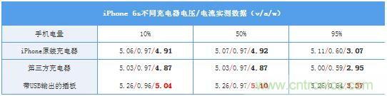 測(cè)試方法:三款手機(jī)分別混用三款充電器進(jìn)行電壓/電流記錄,與原裝充電器進(jìn)行對(duì)比。充電測(cè)試起始電量10%,充15分鐘。