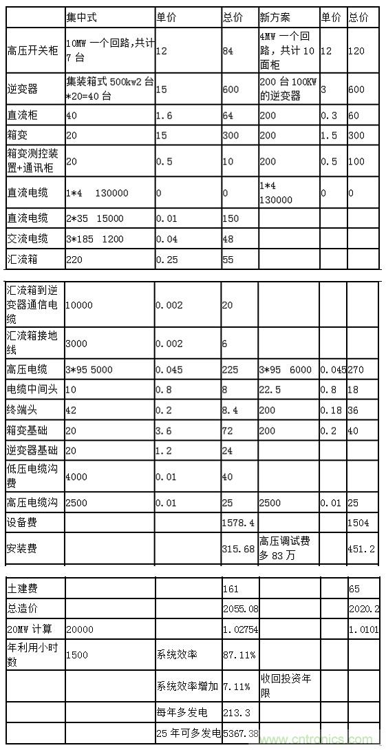 由以上表1可見,按本方案設(shè)計(jì)0.1MW單元逆變器-箱變組合配電系統(tǒng),不需增加投資。特別是山地光伏電站,具有很高的效率(比集中式多7%)和度電成本更低,按每年1500發(fā)電小時(shí)數(shù)計(jì)算。20MW即可每年可多發(fā)電213萬(wàn)度,按1元錢電價(jià)計(jì)算。25年可多收入5300多萬(wàn)元。經(jīng)濟(jì)效益明顯。