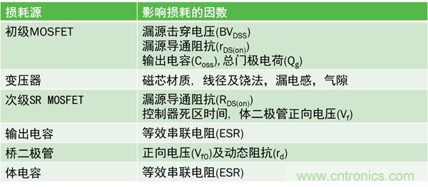 表2. 損耗源及影響損耗的因素