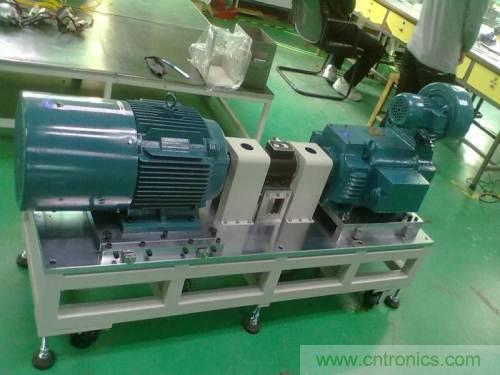那針對電動汽車電機試驗這種情況,目前比較好的方案就是用高速異步電機的加載方案,用本身同樣恒功率范圍寬、峰值轉速高的電機作為加載負載。這種方案可以根據(jù)用戶的具體測試范圍,定制不同的測功機專用電機作為測試負載,保證機械負載的加載范圍覆蓋被測電機。