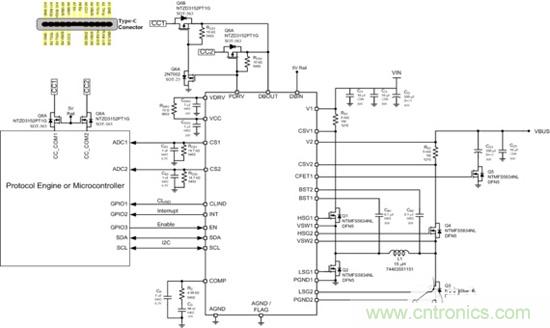 因此,要想滿足USB type-c和Quick Charge這兩個(gè)標(biāo)準(zhǔn),就需要一款能夠根據(jù)用電設(shè)備的要求進(jìn)行電壓調(diào)節(jié)的電源控制器。單電感H橋升降壓電源控制器 NCP81239就是非常理想的選擇。它可以適配寬輸入電壓范圍和寬輸出電壓范圍,芯片集成的I2C接口可和外部的微控制器(MCU)配合進(jìn)行輸出電壓的步進(jìn)調(diào)整,且可在同一個(gè)type-c端口實(shí)現(xiàn)多種快充協(xié)議,還能對(duì)接蘋(píng)果LighTIng 接口快充協(xié)議、三星接口快充協(xié)議等等。
