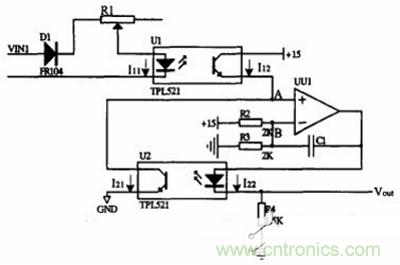 在選擇器件的時候,我們考慮到經(jīng)濟性和實用性,光電禍合器選擇了日本東芝公司生產(chǎn)的TLP521,運算放大器選擇的雙運算放大器TL082。
