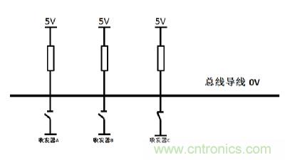 CAN總線的仲裁是基于“線與原理”,如圖1所示。當(dāng)個收發(fā)器同時(shí)發(fā)出不同電平信號時(shí),隱性電平總是被顯性電平覆蓋。CAN控制器在發(fā)送報(bào)文的同時(shí)會監(jiān)聽總線狀態(tài)與自己發(fā)送的電平是否一致,如果不一致發(fā)生在ID段則會發(fā)生仲裁,如果發(fā)生在其他區(qū)域則會觸發(fā)相應(yīng)錯誤。