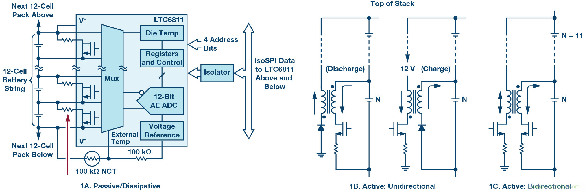 圖1. 電池單元均衡典型拓撲結(jié)構(gòu)。