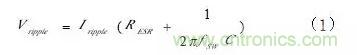 從圖中可以看到,電感的電流波形等價于在直流I(DC)上疊加一個I(P-P)值為ΔI的交流。因而,I(DC)成為輸出電流I(O),主要消耗在負(fù)載上;交流ΔI則消耗在負(fù)載電容的ESR(Equation Serial Resistance)上,成為輸出紋波V(ripple)。