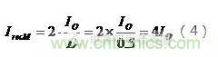 (2)流過輸出整流器的有效值電流與峰值電流的關(guān)系: