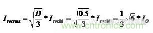 (4)有效值電流與輸出電流平均值的關(guān)系為: