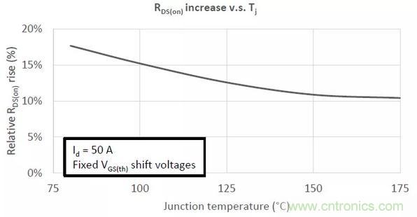 通常來(lái)說(shuō),15%的Rds(on)增量是最壞的情況。更大的增量只可能出現(xiàn)在高電流和低結(jié)溫的工況中,這在實(shí)際應(yīng)用中十分罕見(jiàn)。