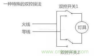 雙控開(kāi)關(guān)有很多種接線(xiàn)方式,如果電工采用了下面這種接線(xiàn)方法,就會(huì)關(guān)燈后發(fā)微光。