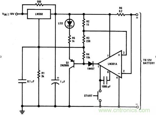 對(duì)于膠體電介質(zhì)鉛酸蓄電池來(lái)說(shuō),該電路是一個(gè)高性能的充電器。該充電器能夠迅速地為電池充電,且當(dāng)電池充滿時(shí),它可迅速地?cái)嚅_(kāi)充電。最開(kāi)始的充電電流限制在2A。隨著電池電流和電壓的增加,當(dāng)電流增加到150mA時(shí),充電器就會(huì)調(diào)整至較低的漂浮電壓,以防止過(guò)度充電。