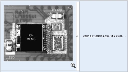 圖5:射頻-微機電系統(tǒng)試樣(圖中文字:完整的適應性匹配網絡在單個模塊中實現)