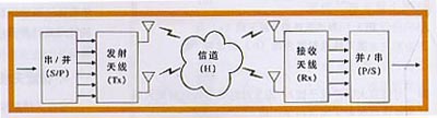 移動通信環(huán)境中存在多個散射體、反射體,在無線通信鏈路的發(fā)射與接收端存在多條傳播路徑,多徑傳播對通信的有效性與可靠性造成了嚴重的影響。研究表明,可以利用多徑引起的接收信號的某些空間特性實現(xiàn)接收端的信號分離。多輸入一多輸出(MIMO)技術在通信鏈路兩端均使用多個天線,發(fā)端將信源輸出的串行碼流轉(zhuǎn)成多路并行子碼流,分別通過不同的發(fā)射天線陣元同頻、同時發(fā)送,接收方則利用多徑引起的多個接收天線上信號的不相關性從混合信號中分離估計出原始子碼流(見圖4)這相當于頻帶資源重復利用,可以在原有的頻帶內(nèi)實現(xiàn)高速率的信息傳輸,使頻譜利用率和鏈路可靠性極大的提高。MIMO系統(tǒng)提供分集增益(diversitygain)和復用增益(multiplexinggain)。