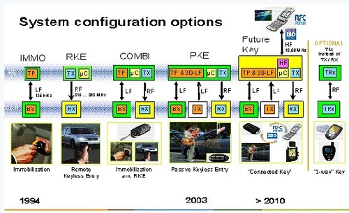 2003,NXP推出了無鑰匙系統(tǒng)(PKE或稱PEPS),徹底改變了汽車安防應(yīng)用領(lǐng)域的發(fā)展前景,給用戶帶來了全新舒適與便利的體驗:車主在整個駕車過程中都完全不需要使用鑰匙,只需要隨身攜帶。當(dāng)車主進(jìn)入車子附近的有效范圍時,車子會自動檢測鑰匙并進(jìn)行身份識別,如成功會相應(yīng)的打開車門或后備箱;當(dāng)車主進(jìn)入車內(nèi),只需要按引擎啟動按鈕,車子會自動檢測鑰匙的位置,判斷鑰匙是否在車內(nèi),是否在主駕位置,如成功則發(fā)動引擎。千萬不要小瞧這個看似不起眼的改變,它在簡化你的生活方面發(fā)揮著重大作用。無鑰匙系統(tǒng)絕不僅僅是帶來了舒適與方便,其在安全性方面也有了本質(zhì)的提高,通過低頻和射頻的雙向通訊,汽車與鑰匙之間可以完成復(fù)雜的雙向身份認(rèn)證,在安全性方面與引擎防盜類似,要遠(yuǎn)好于傳統(tǒng)的遙控鑰匙。從2003年少量高端車型成功量產(chǎn)無鑰匙系統(tǒng)開始,全球市場用了兩到三年的時間推廣普及這一技術(shù),目前,幾乎全球每一個主流車廠都有應(yīng)用NXP的無鑰匙產(chǎn)品,覆蓋中高端的車型,甚至是低端車型。