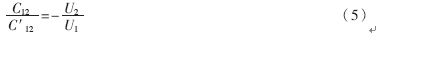 如果將兩個三端電容串接起來,分別用兩個信號源供電,就形成了如圖4所示的等效電路,其中,Y12=jωC12,Y′12=jωC′12。在公共點(diǎn)D與接地端之間連接一個檢流計(jì),調(diào)節(jié)兩個外加電壓的幅值和相位,使通過兩個直接電容流向D點(diǎn)的電流大小相等、方向相反,直道檢流計(jì)指零,便可得到下面的關(guān)系式: