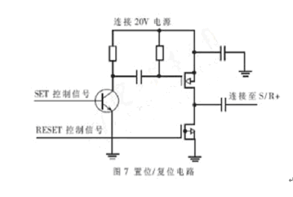 得到需要的電壓后,設計圖騰柱式置位復位電路,如圖7所示。圖中SET和RESET可以各連接MCU的一個引腳,當SET為高傳感器時置位;RESET為高電傳感器時復位。