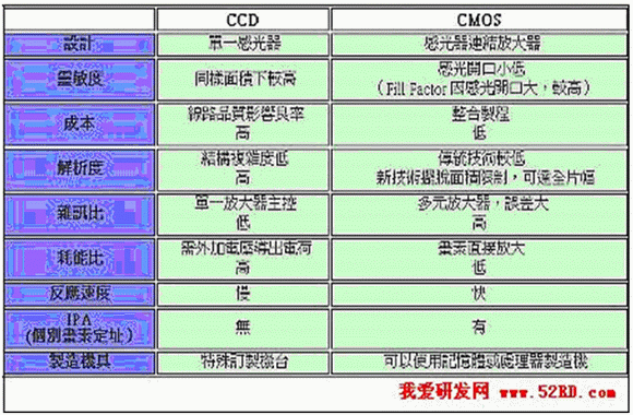 CCD與CMOS的比較