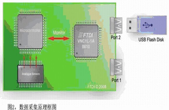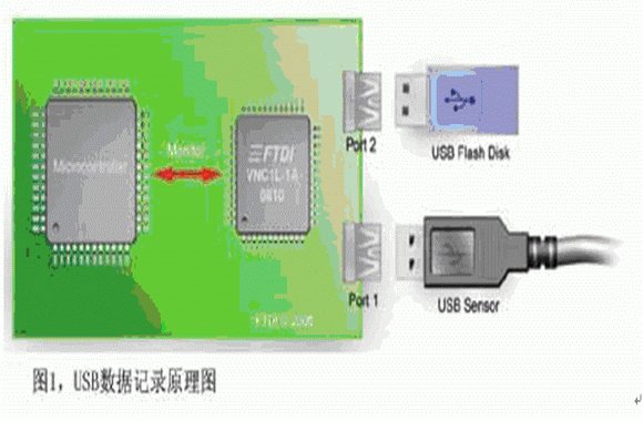 目前市場(chǎng)上有很多種數(shù)據(jù)采集設(shè)備可用于在PC上記錄數(shù)據(jù),如National Instrument的LabVIEW,不過(guò)這類設(shè)備的傳感器件開始越來(lái)越多地采用USB接口而不是RS232或其他傳統(tǒng)接口。過(guò)去在嵌入式系統(tǒng)中應(yīng)用USB設(shè)備需要性能相對(duì)較強(qiáng)的硬件,要帶有USB Host控制器接口、RTOS以及USB軟件驅(qū)動(dòng),結(jié)果因USB Host功能實(shí)施成本的原因設(shè)計(jì)工程師一直都不太愿意在小型8位或16位MCU系統(tǒng)上增加USB設(shè)備。但隨著最新一代智能USB Host控制器IC的推出,與MCU配合使用不僅可為PC應(yīng)用使用USB數(shù)據(jù)采集設(shè)備,而且還可將數(shù)據(jù)存儲(chǔ)在低成本高容量的閃存盤上。