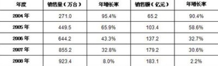表1 2004-2008年中國數(shù)碼相機市場銷售情況