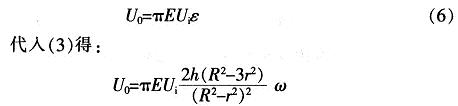 式中:μ為硅材料的泊松比,μ=O.35;R,r,h分別為硅膜片的有效半徑,計(jì)算半徑,厚度;E為硅材料的模量,E=8.7Gpa;P為作用于平膜片上的壓力;ω為平膜片的撓度;